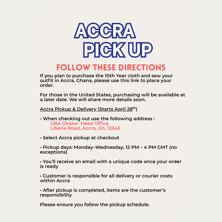 • Pickup days: Monday–Wednesday, 12 PM – 4 PM GMT (no exceptions)